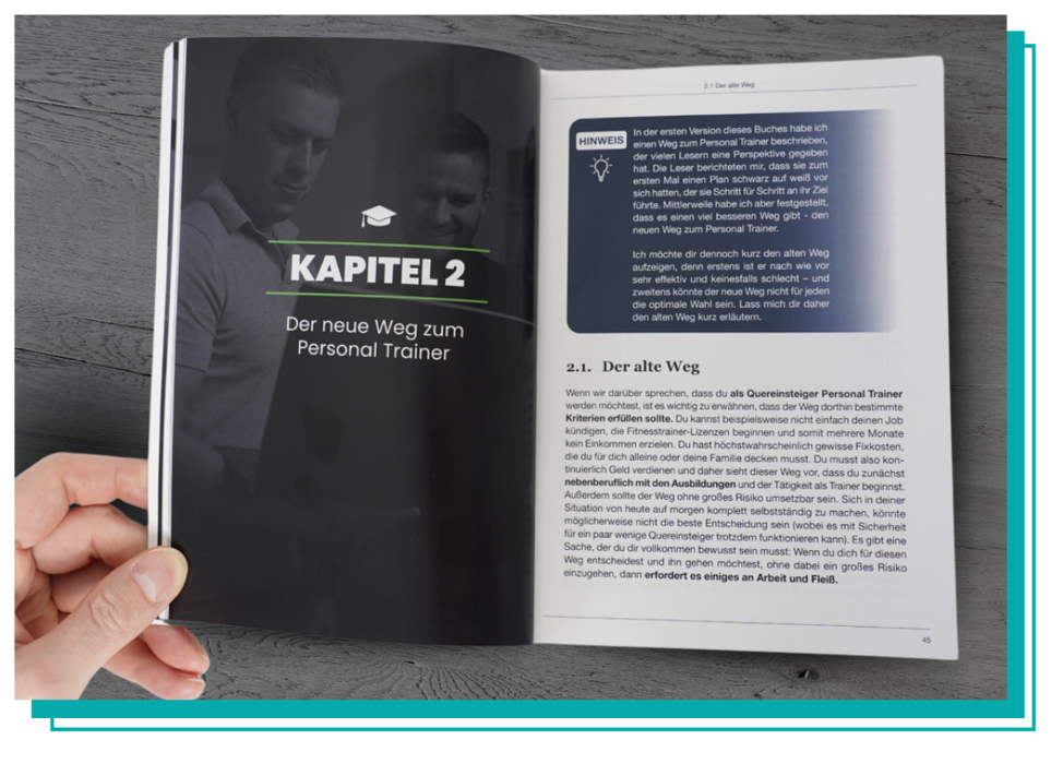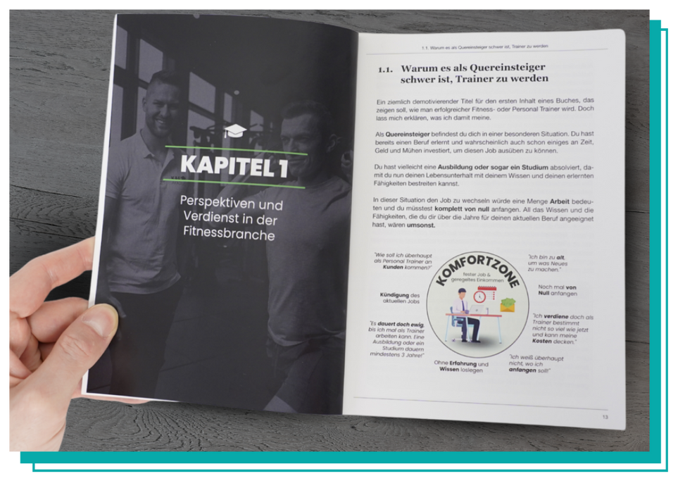Meine Mission ist es, jedem Fitness- oder Personal Trainer das Leben seiner Träume zu ermöglichen. Daher biete ich dieses Buch kostenlos* an. Über 12 Jahre Erfahrung aus der Fitnessbranche stecken in diesem Buch und ich möchte, dass du nicht die gleichen Fehler wie ich begehst. Daher sichere dir mit diesem Buch eine Abkürzung zum Erfolg und erfahre, wie dein Weg zum Personal Trainer aussehen kann.