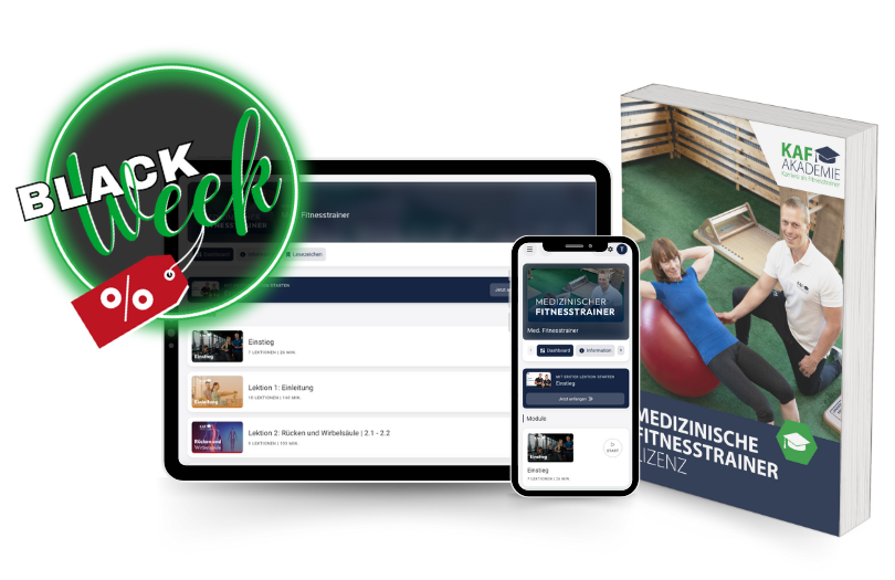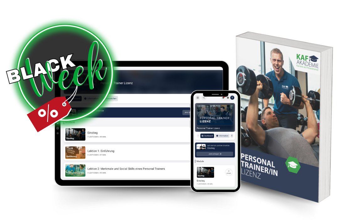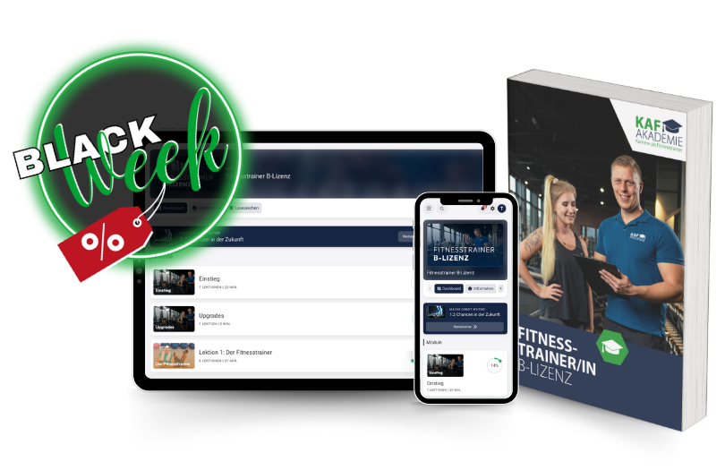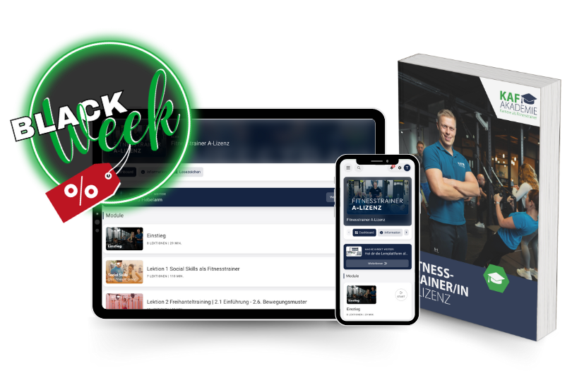 Paket aus allen 5 Lizenzen der KAF Akademie (B-, A-, Medizinischer Fitnesstrainer, Ernährungsberater- & Personal Trainer Lizenz)