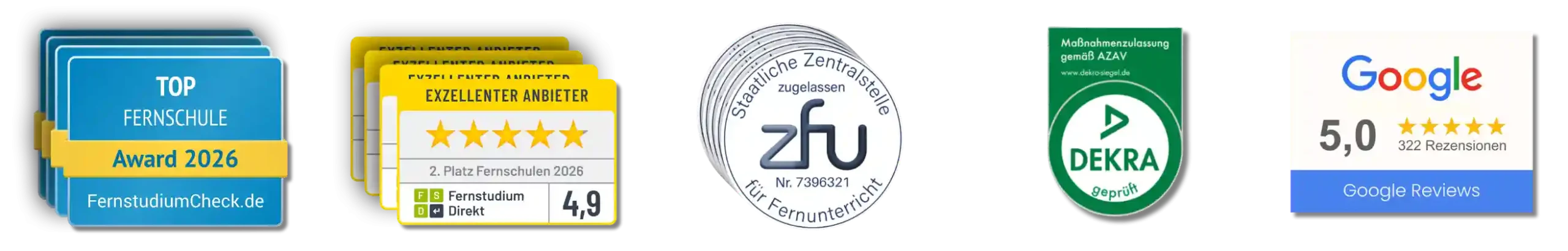 Ja, alle Lizenzen der KAF Akademie sind von der ZFU (staatliche Zentralstelle für Fernunterricht) staatlich geprüft und zugelassen. Zusätzlich dazu ist die KAF Akademie ein von der DEKRA zertifizierter Bildungsträger.