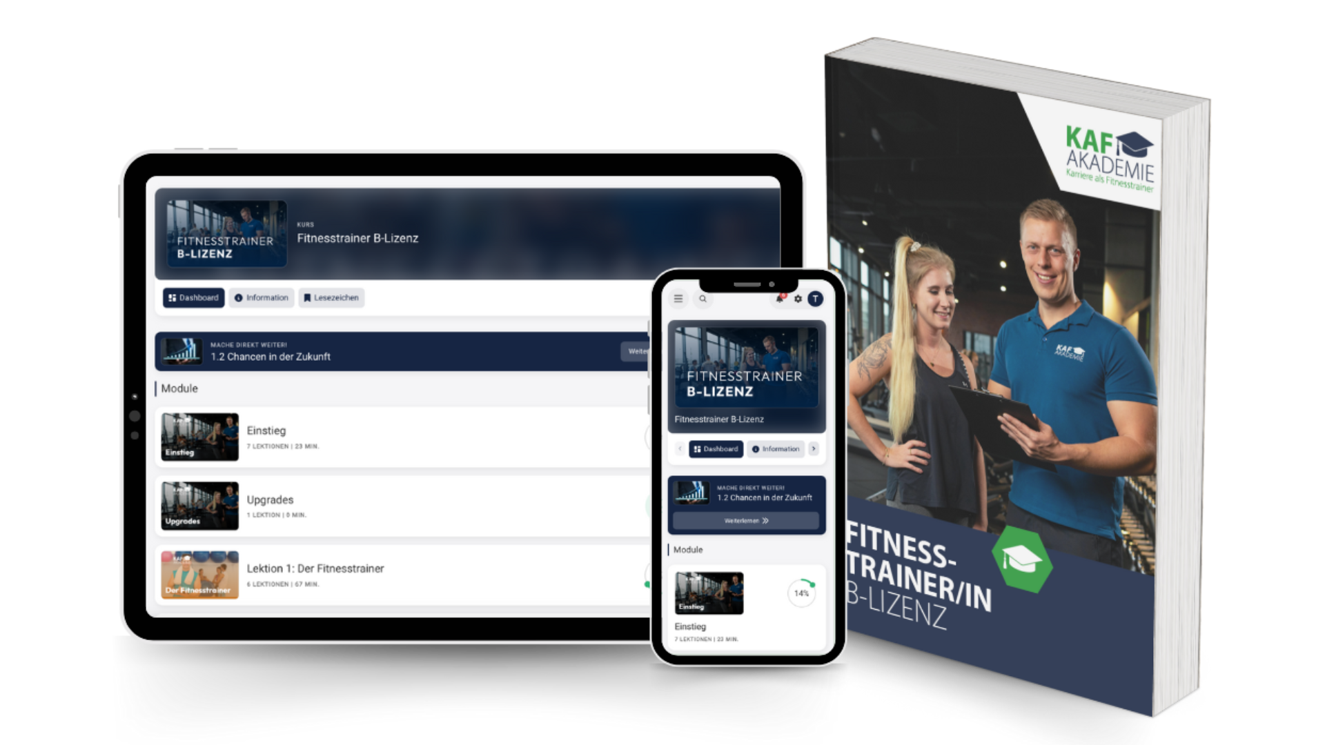 Das Besondere bei der KAF Akademie: ALLE Inhalte, die im Skript enthalten sind, werden von unserem Dozenten & Fitnesstrainer Tim leicht verständlich mit hochwertigen 4K-Videos erklärt! Wir gehen sicher, dass du wirklich alles verstehst und so viel wie möglich lernst, indem wir kein prüfungsrelevantes Thema auslassen.