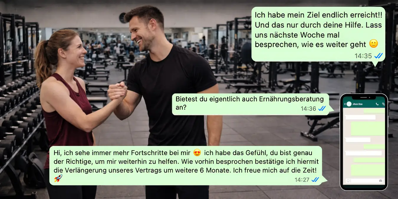 Am einfachsten lässt sich Umsatz erzielen, indem man Bestandskunden immer wieder verlängert und ihnen noch mehr weiterhilft. Dafür braucht es: Die richtige Ansprache, überzeugende Argumente und neue Angebote, die wir schrittweise in deinem Personal Training Business implementieren.