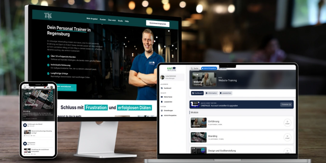 Durch Online-Coaching erweitern wir dein Angebot und die Anzahl deiner potenziellen Kunden. Vom Verkaufsprozess über den Vertragsabschluss bis zum Aufbau der einzelnen Coaching-Stunden bringen wir dir alles bei, damit du Online-Coaching erfolgreich in deinem Business implementierst.