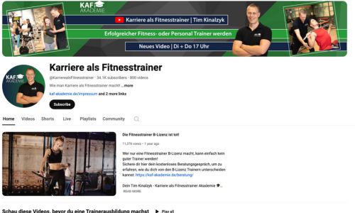 Gründung der KAF Akademie (“Karriere als Fitnesstrainer Akademie”) mit dem Ziel, alle relevanten Kenntnisse und Fähigkeiten zu vermitteln, die bei dem Job als Fitness- oder Personal Trainer gebraucht werden, um den Job besonders gut ausführen zu können.