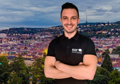 “Hi! Mein Name ist Max Fischl und ich bin 25 Jahre alt. Ich arbeite seit 7 Jahren in der Fitnessbranche, davon den Großteil als Personal Trainer, Fitnesstrainer und Ernährungsberater. Auch ein Studium in diesem Bereich habe ich abgeschlossen. Schon vor Gründung der KAF Akademie habe ich Tim beim Karriere als Fitnesstrainer YouTube-Kanal und dem Podcast geholfen. Seit Gründung bin ich für die Akademie tätig und vor allem für die Erstellung sowie das up-to-date Halten der Ausbildungen zuständig.”