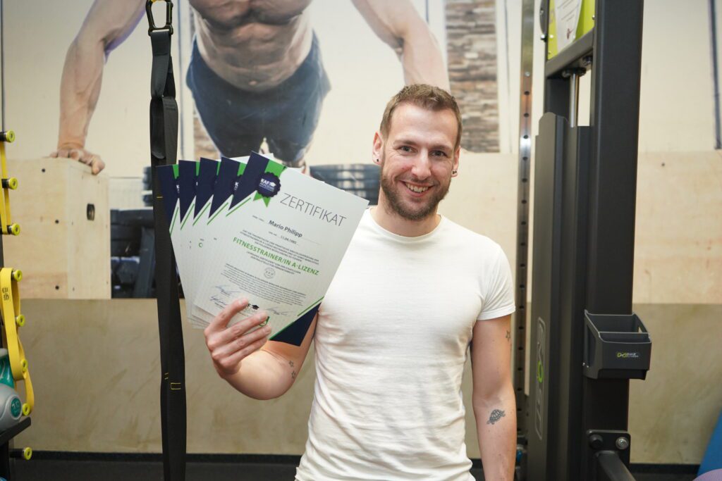 Nachdem Mario die B-, & A-Lizenz absolviert hat, hat er angefangen, die ersten Kunden zu generieren und konnte sich mit 5 Kunden ein gutes Nebeneinkommen aufbauen. Um Menschen mit Schmerzen noch besser helfen zu können, hat er auch noch die medizinische Fitnesstrainer Lizenz absolviert.