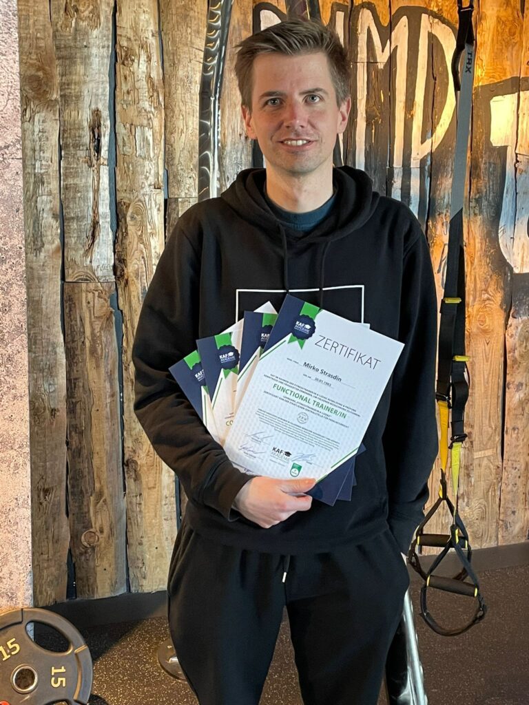 Mirko war schon immer sportinteressiert und neben dem Fußball war das Fitnesstraining seine zweite Leidenschaft. Er hat die B-Lizenz bereits bei einem anderen Anbieter absolviert und war nicht wirklich zufrieden. Also ist er für die weiteren Ausbildungen zur KAF Akademie gewechselt.
