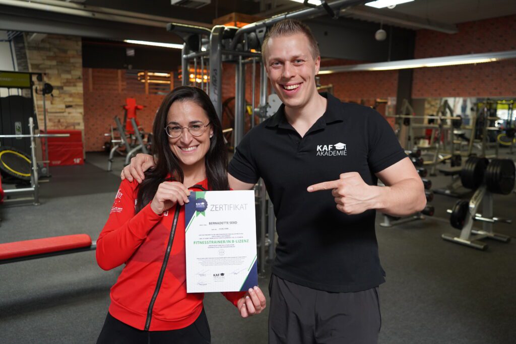Mit dem alten Job im Einzelhandel war Bernadette nicht wirklich zufrieden. Sie hat zwar eine Filiale geleitet und nicht schlecht verdient, aber wirklich viel Spaß hat ihr der Job nicht gemacht. Sie war schon immer fitnessbegeistert und wollte etwas an ihrer beruflichen Situation ändern. Daher hat sie die Ausbildungen bei der KAF Akademie gestartet.